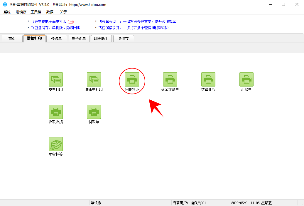 1、进入飞豆票据打印软件,点击【托收凭证】
