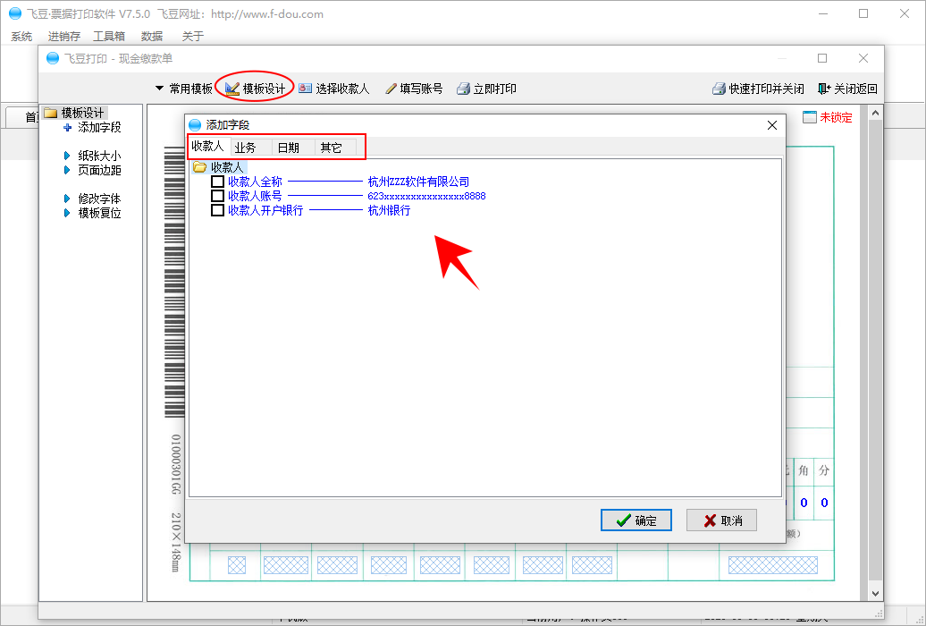 飞豆票据打印支持多种现金缴款单打印,是公司财务人员打印现金缴款单的好帮手: