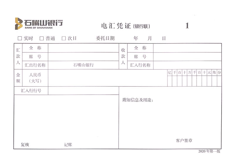 模板名称:汇款单0048(石嘴山银行,电汇凭证)