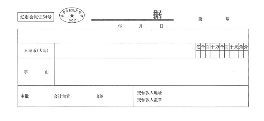 模板名称:收据0077(辽财会帐证64号据)
