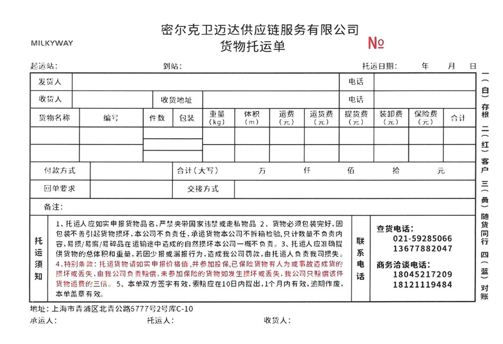 模板名称:托运单257(密尔克卫迈达供应链服务有限公司货物托运单)