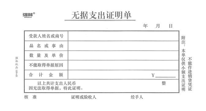 模板名称:付款单0026(无据支出证明单)